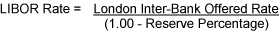 | (ii) | Reserve Percentage means the total of the maximum reserve percentages for determining the reserves to be maintained by member banks of the Federal Reserve System for Eurocurrency Liabilities, as defined in Federal Reserve Board Regulation D, rounded upward to the nearest 1/100 of one percent. The percentage will be expressed as a decimal, and will include, but not be limited to, marginal, emergency, supplemental, special, and other reserve percentages. | ||