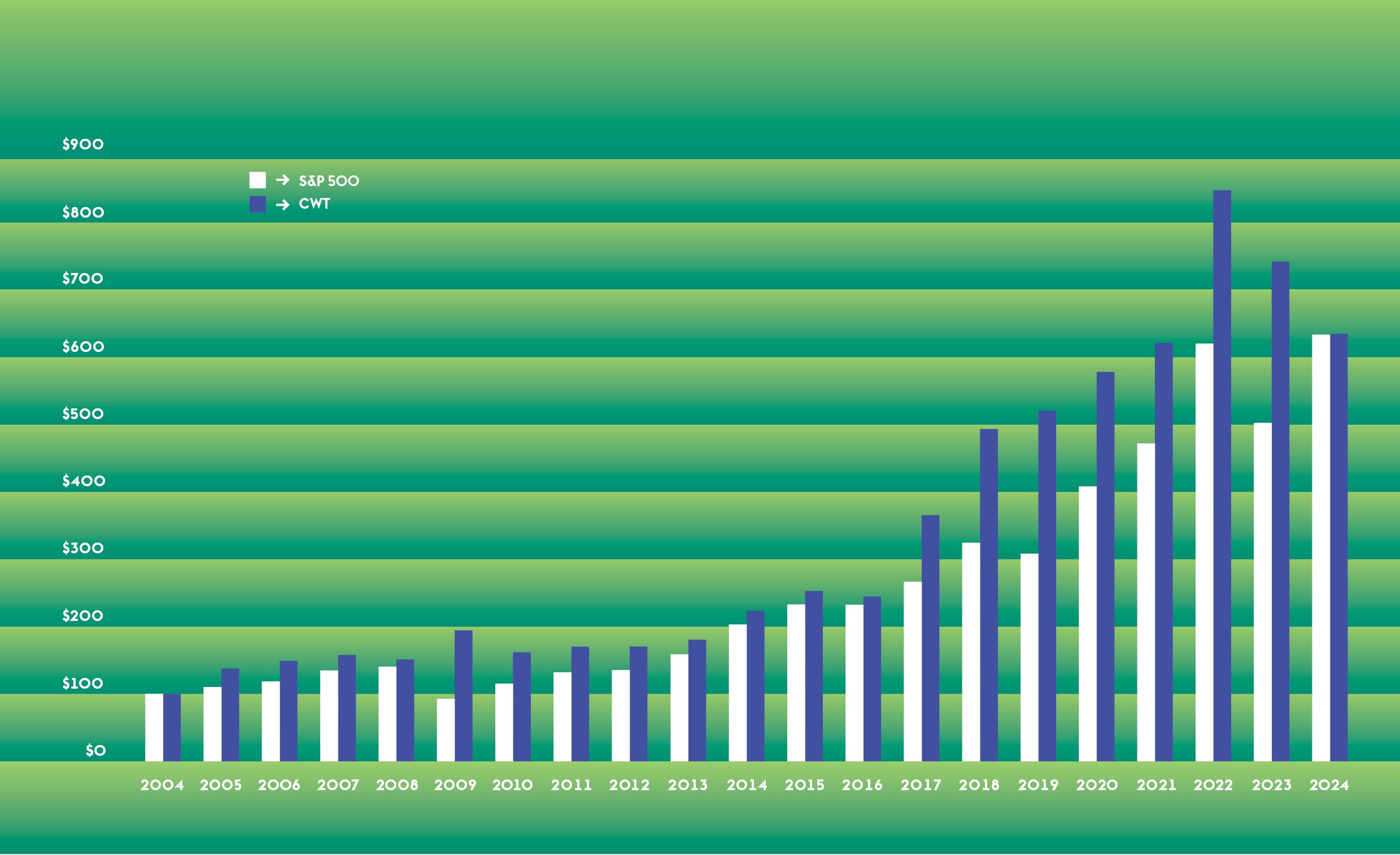 California Water Service Group (NYSE: CWT) is the third-largest publicly traded water utility in the United States, providing high-quality water and wastewater services to more than two million people through four regulated subsidiaries: California Water Service (Cal Water), Hawaii Water Service (Hawaii Water), New Mexico Water Service (New Mexico Water), and Washington Water Service (Washington Water). A fifth subsidiary, Texas Water Service, invests in water and wastewater infrastructure in Texas.